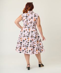 Unique Vintage Plus Size Purple Pin-Up Witch Cotton Shirt Dress