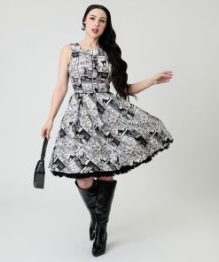 Be the first to review “Retrolicious Black & White Spooky News Print Elizabeth Cotton Swing Dress” Cancel reply