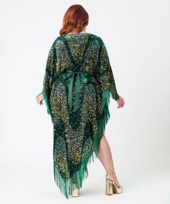 Be the first to review “Smak Parlour Green Sequin Fringe Caftan Dress” Cancel reply