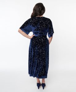 Tags: 1970s, AUG25BS, Bark-decrease-Aug, Bestsellers, Blue, BSOCTOBER24, BSSEPT24, Clothing, Dresses, DRESSUPOCT, extended:224515, Faire, FALL30OCT, Friends40NOV, group:K1615, Holiday 2024, Metallic, Midi, Midi and Maxi, New Years 2024, NOV24BS, Plus Size, QVC, Retro Restocks, Sept24, Sept24Wk1, SEPT25, SEPT25WK1, Three Quarter Sleeve, Unique Vintage, UV Brand, UV Clothing, Velvet, Velvet Dresses, Wrap, Zodiac