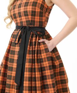 Be the first to review “Unique Vintage Orange Plaid Sleeveless Cotton Swing Dress” Cancel reply