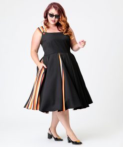 Be the first to review “Unique Vintage Plus Size Black Halloween Stripe Swing Dress” Cancel reply